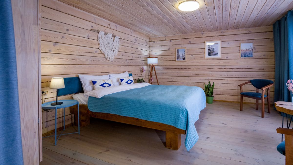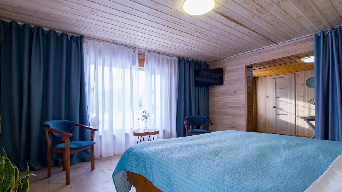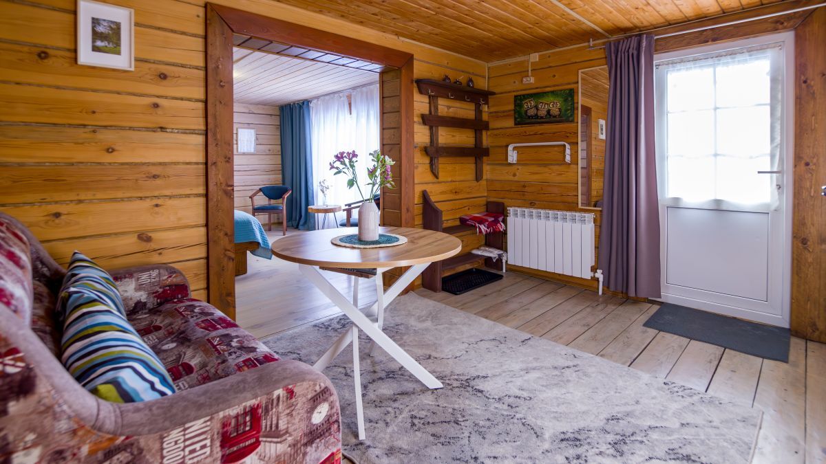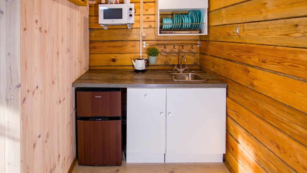 Двухкомнатный светлый дом с видом на территорию и пирс. Выполнен из бруса пихты в скандинавском стиле.