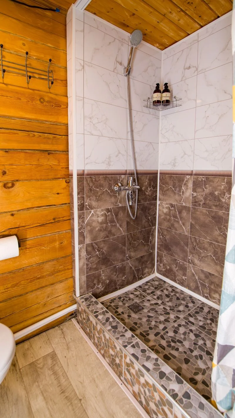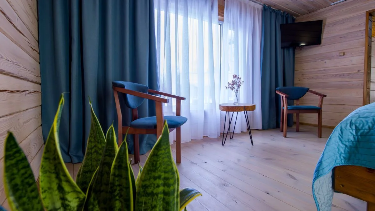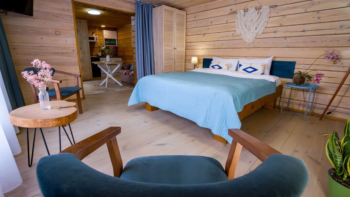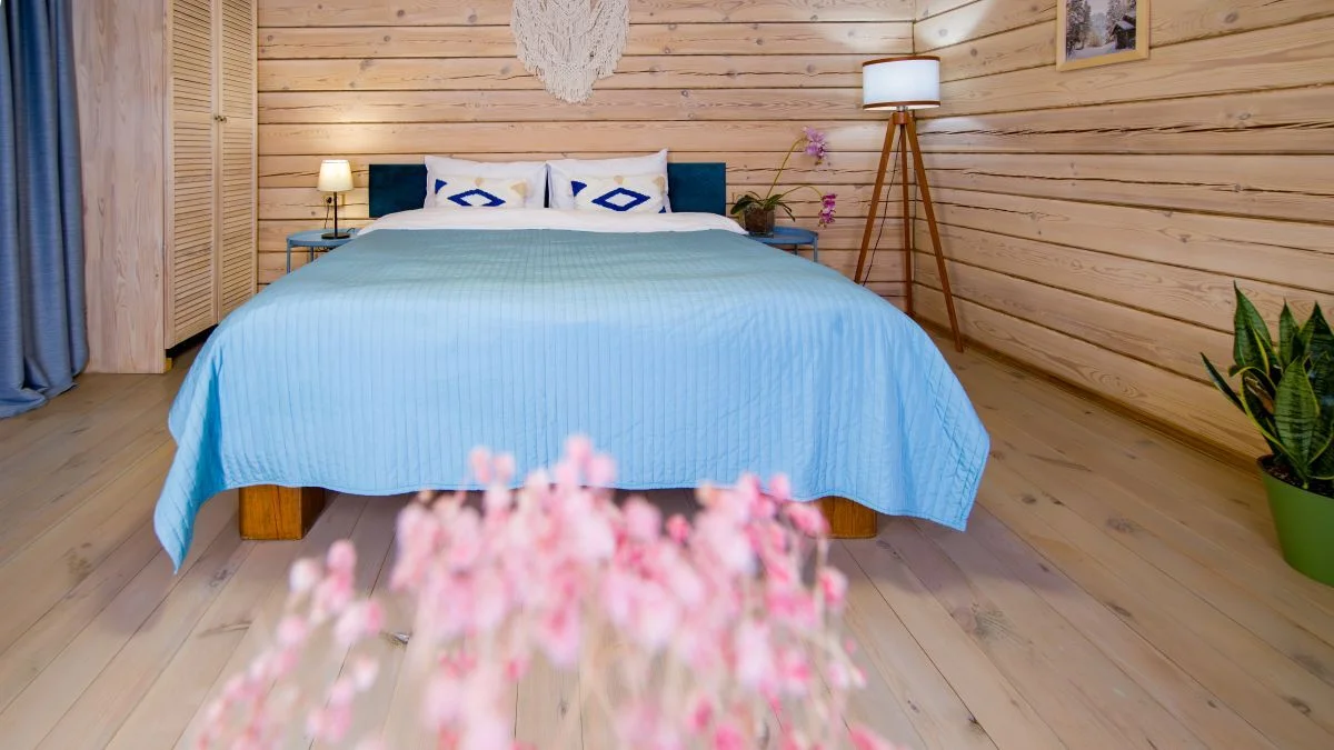 Двухкомнатный светлый дом с видом на территорию и пирс. Выполнен из бруса пихты в скандинавском стиле.