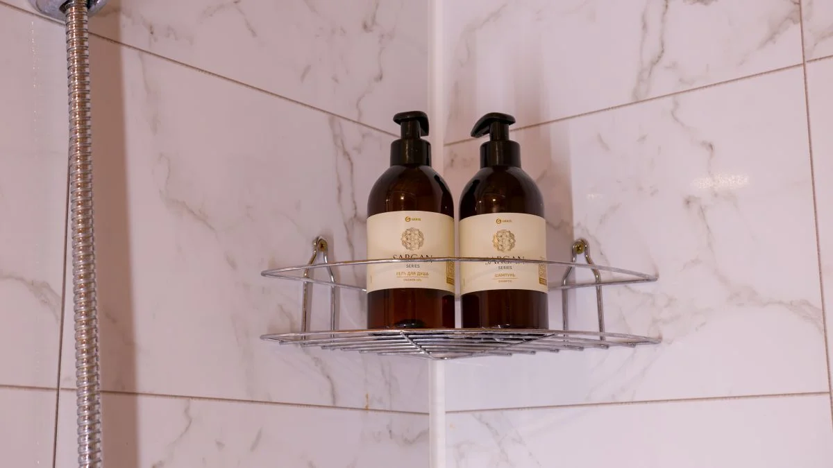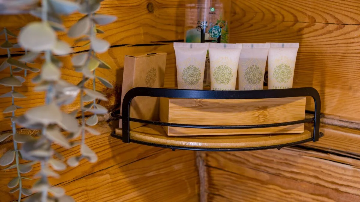 две комнаты: спальня с большой кроватью и диваном, кухня с обеденной зоной, санузел с горячей водой и душем, открытая терраса с подвесным креслом и мебелью.