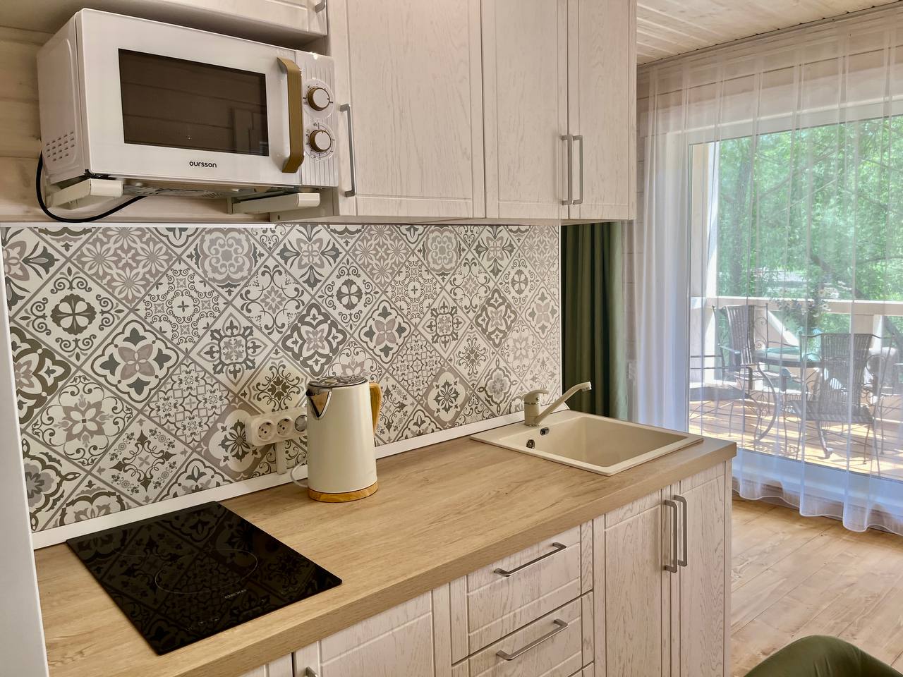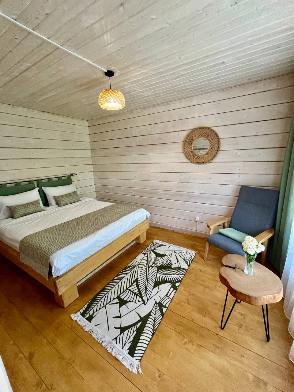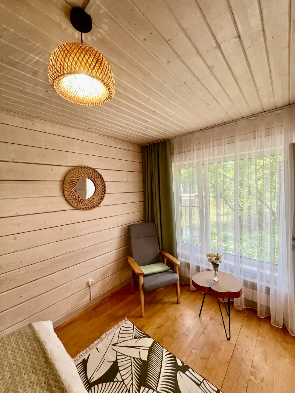 Трехкомнатный просторный и светлый дом с большой террасой и видом на озеро. Рассчитан на размещение большой семьи до 6 человек. Рядом расположены: родник, беседка и мангальная зона.